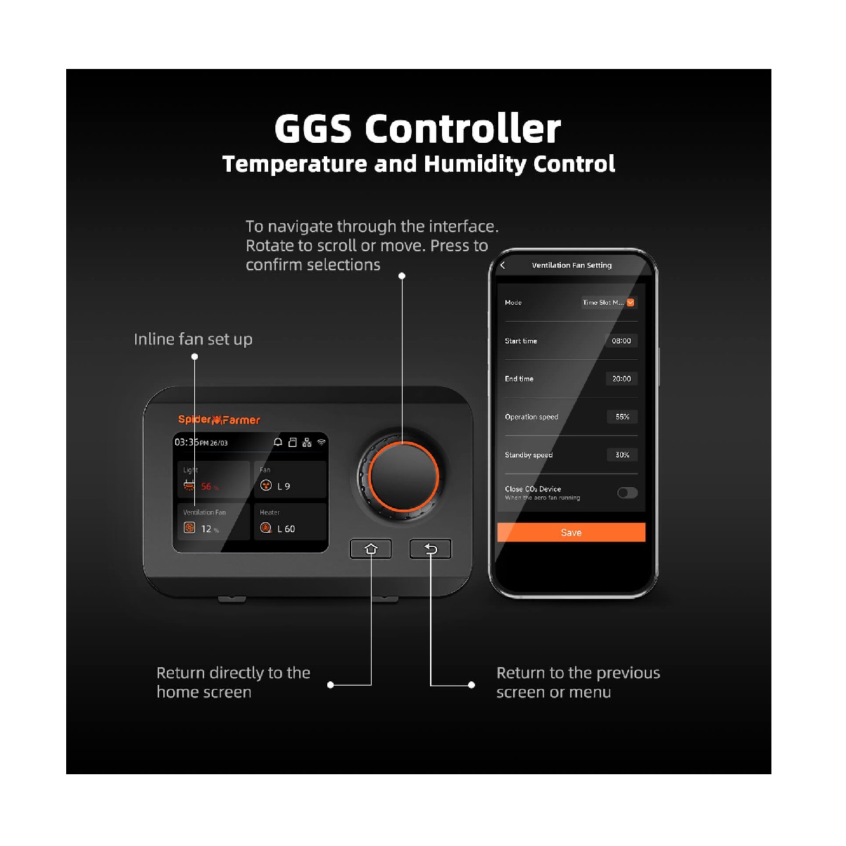 Questo kit viene fornito con CONTROLLER GGS. Connessi tramite Bluetooth o WiFi, i controller per grow room Spider Farmer GGS (Genius Grow System) rappresentano il fulcro dei sistemi di coltivazione intelligenti. Progettati come sistemi automatizzati e basati su app, supportano il controllo remoto della grow room e garantiscono una gestione precisa dei principali fattori ambientali, tra cui PPFD della luce, temperatura e umidità, VPD, suolo, CO2 e molto altro ancora.