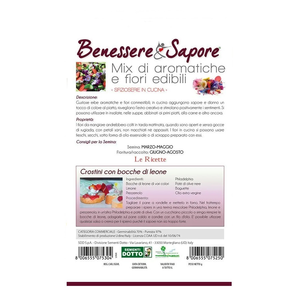 Mix Aromatiche e Fiori Edibili contiene semi di gustose erbe aromatiche e fiori commestibili.