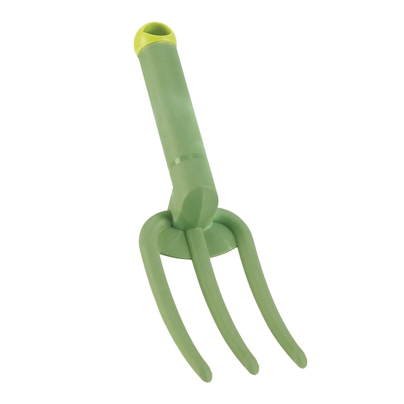 Specifiche Tecniche: forca tridente a base larga 78 mm per grande capacità di carico lunghezza 275 mm in resistente materiale plastico con foro sul tappo per appendere e riporre facilmente l’attrezzo