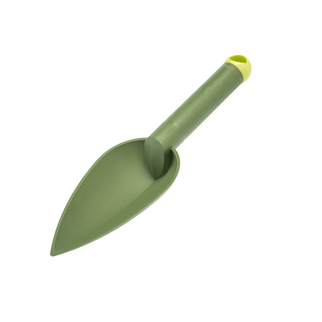 Specifiche Tecniche: trapiantatore a base larga 90 mm per grande capacità di carico lunghezza 285 mm in resistente materiale plastico con foro sul tappo per appendere e riporre facilmente l’attrezzo