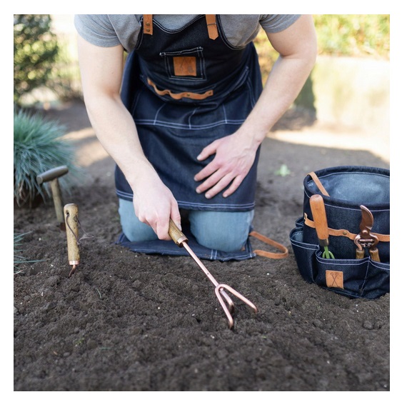 Questo robusto grembiule da giardino in denim è un must per il giardinaggio.